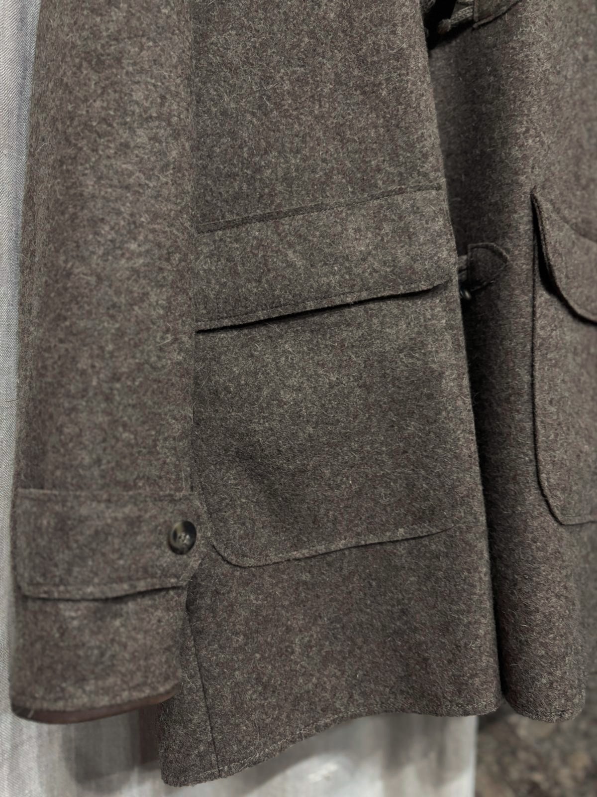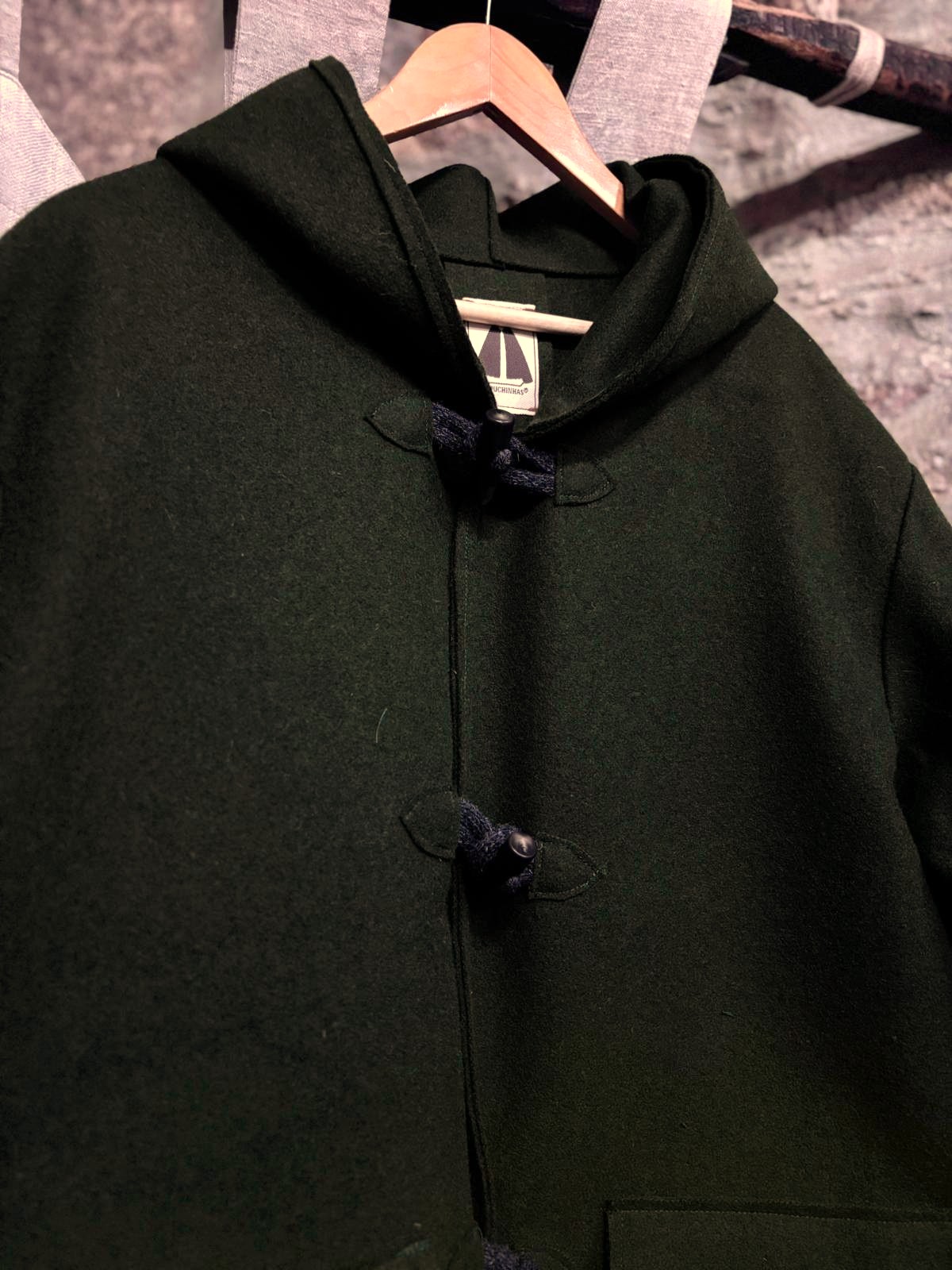 Esta peça é feita de burel ( lã de ovelha prensada).