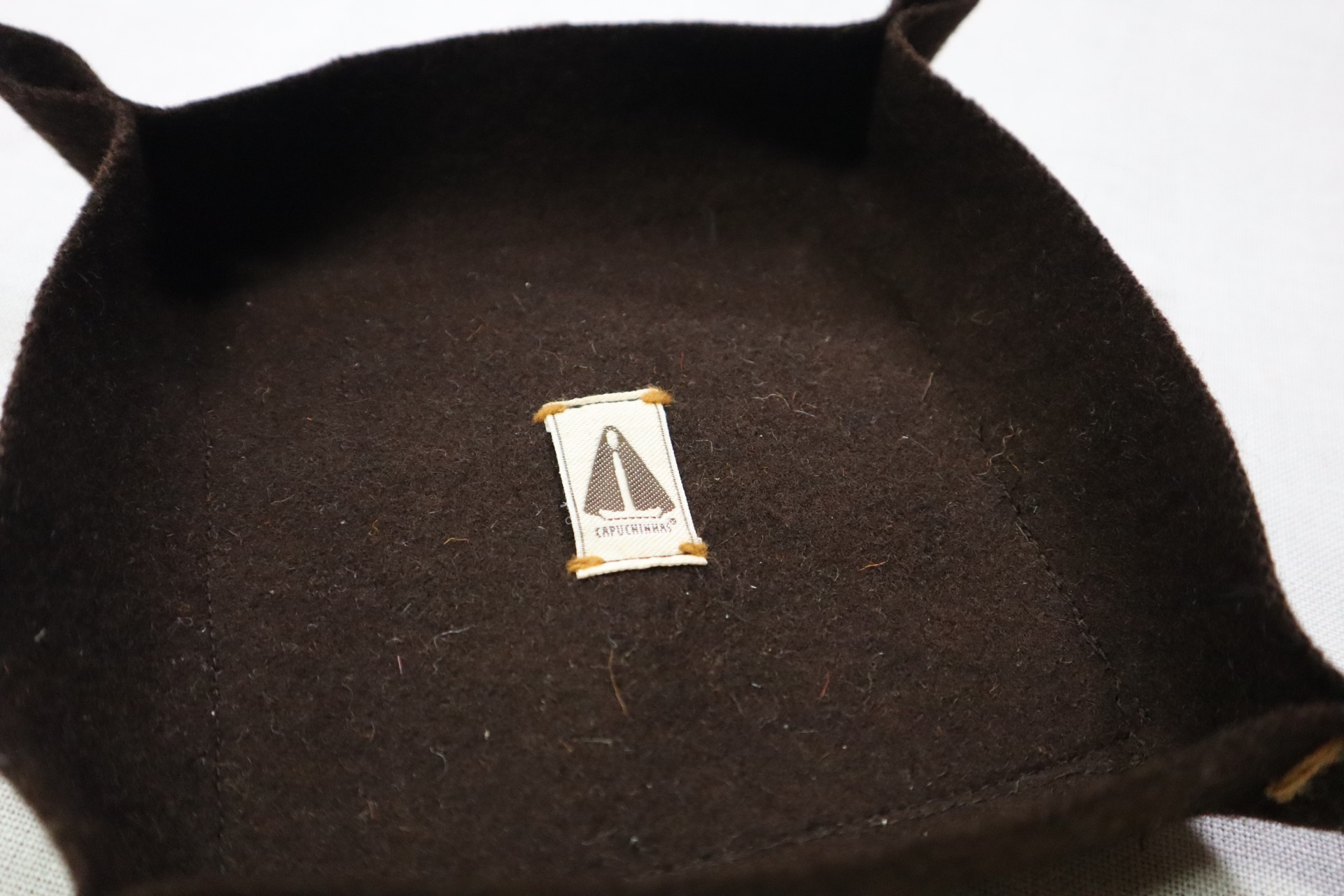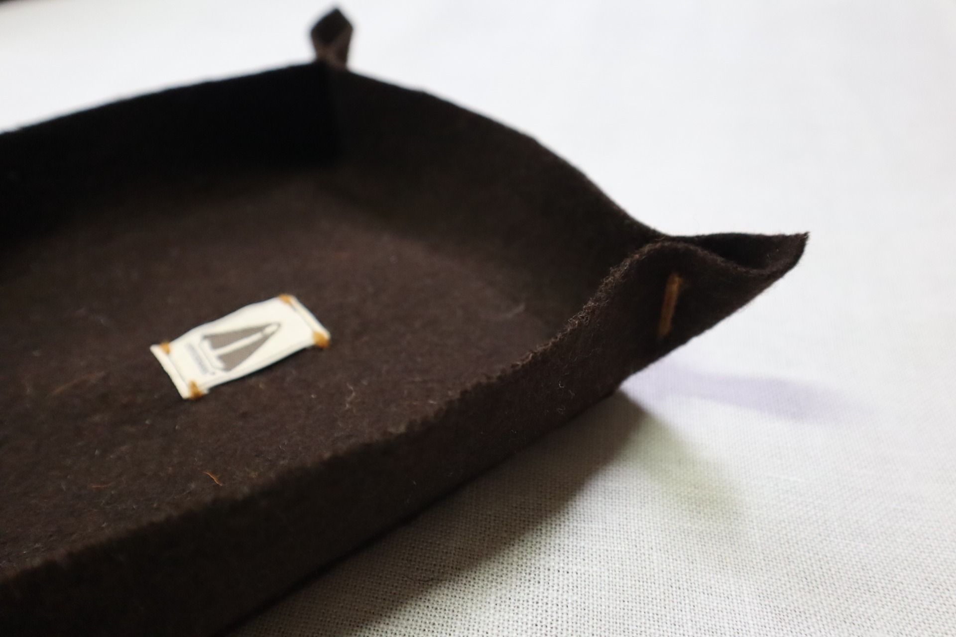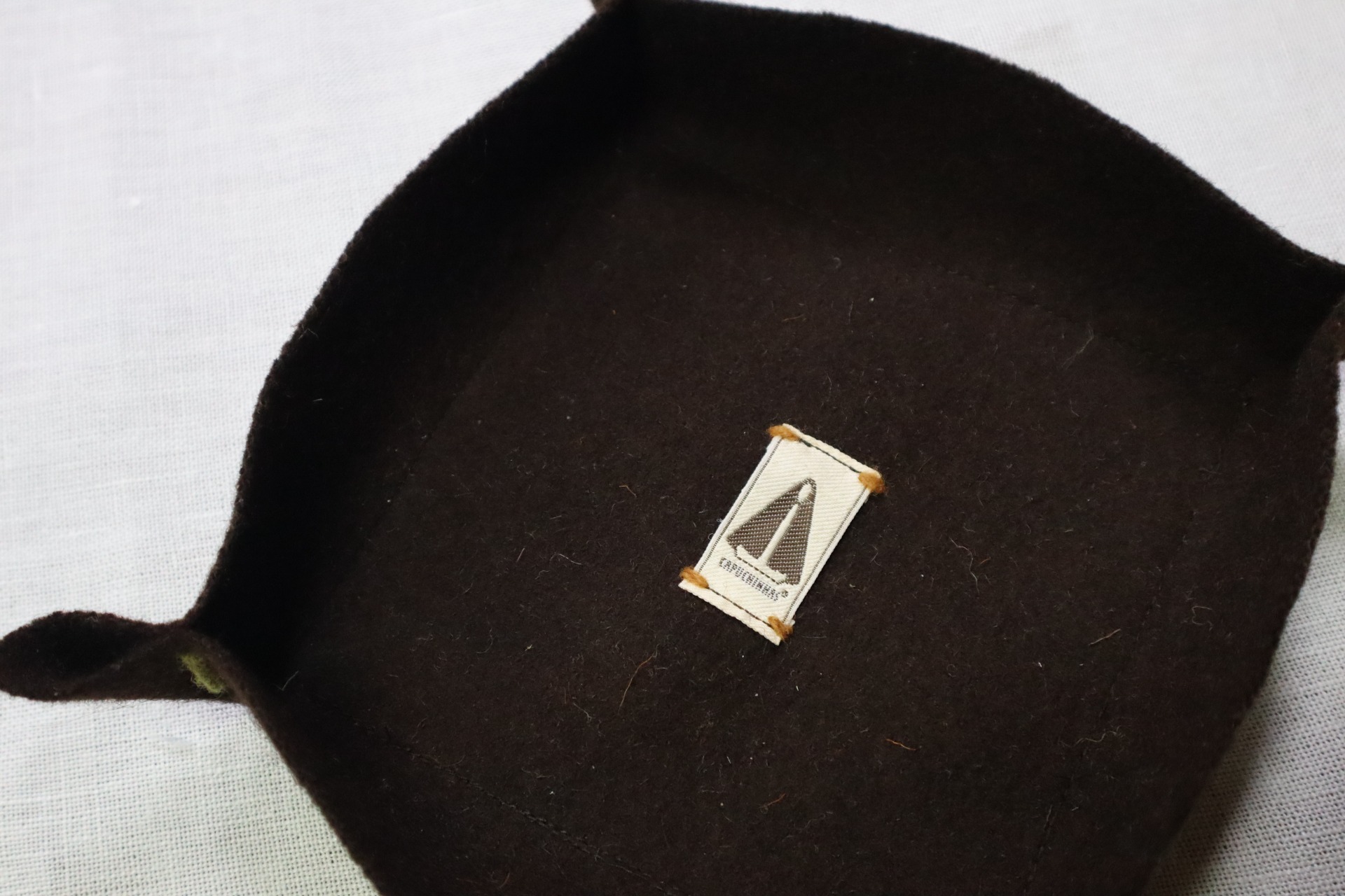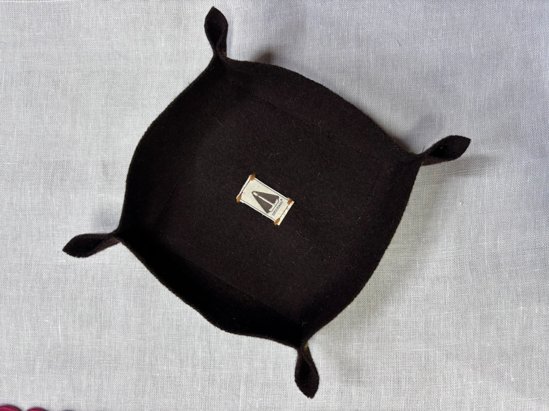 Despeja bolsos em burel, pespontado com quatro cores de lã natural.