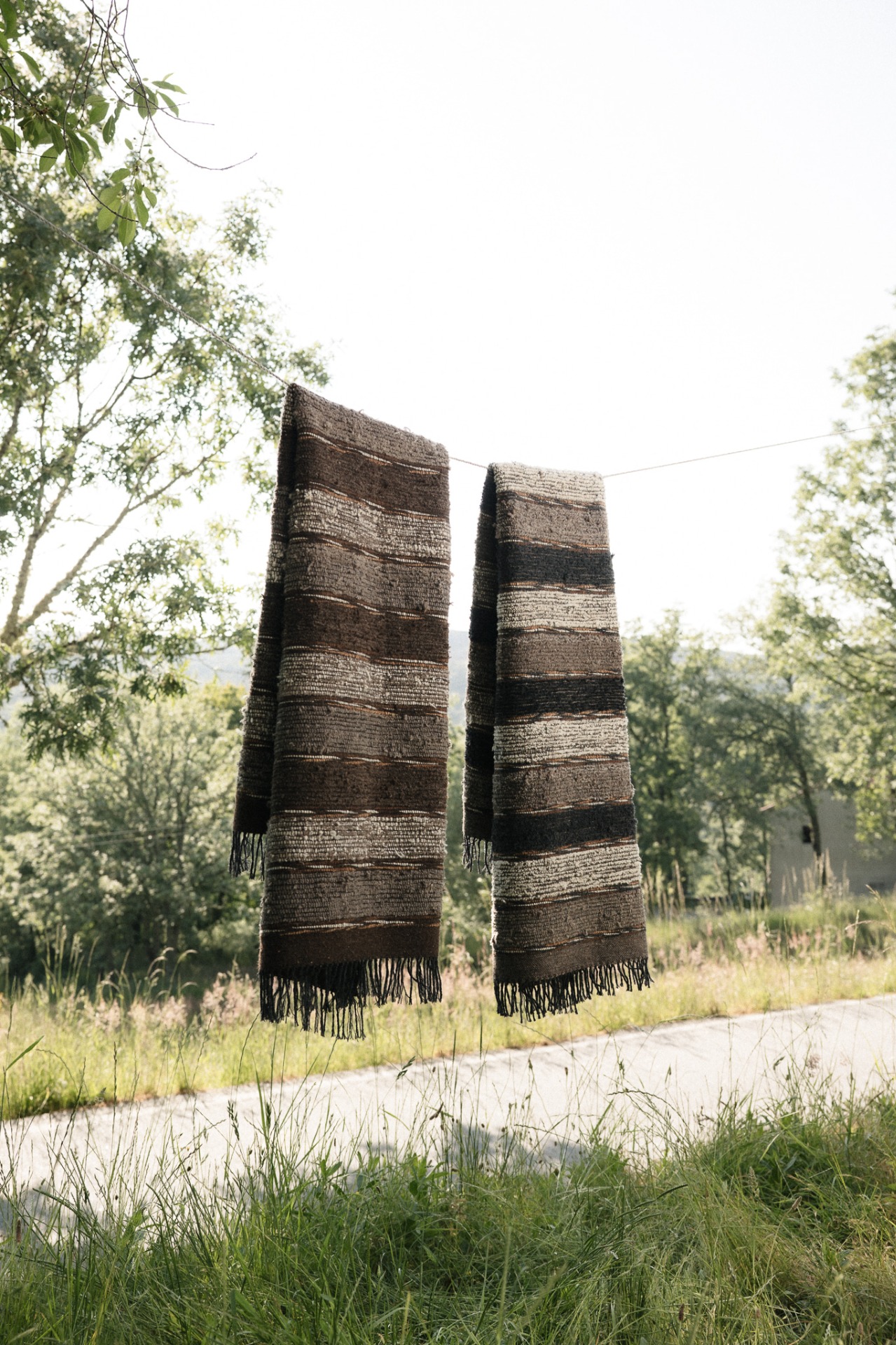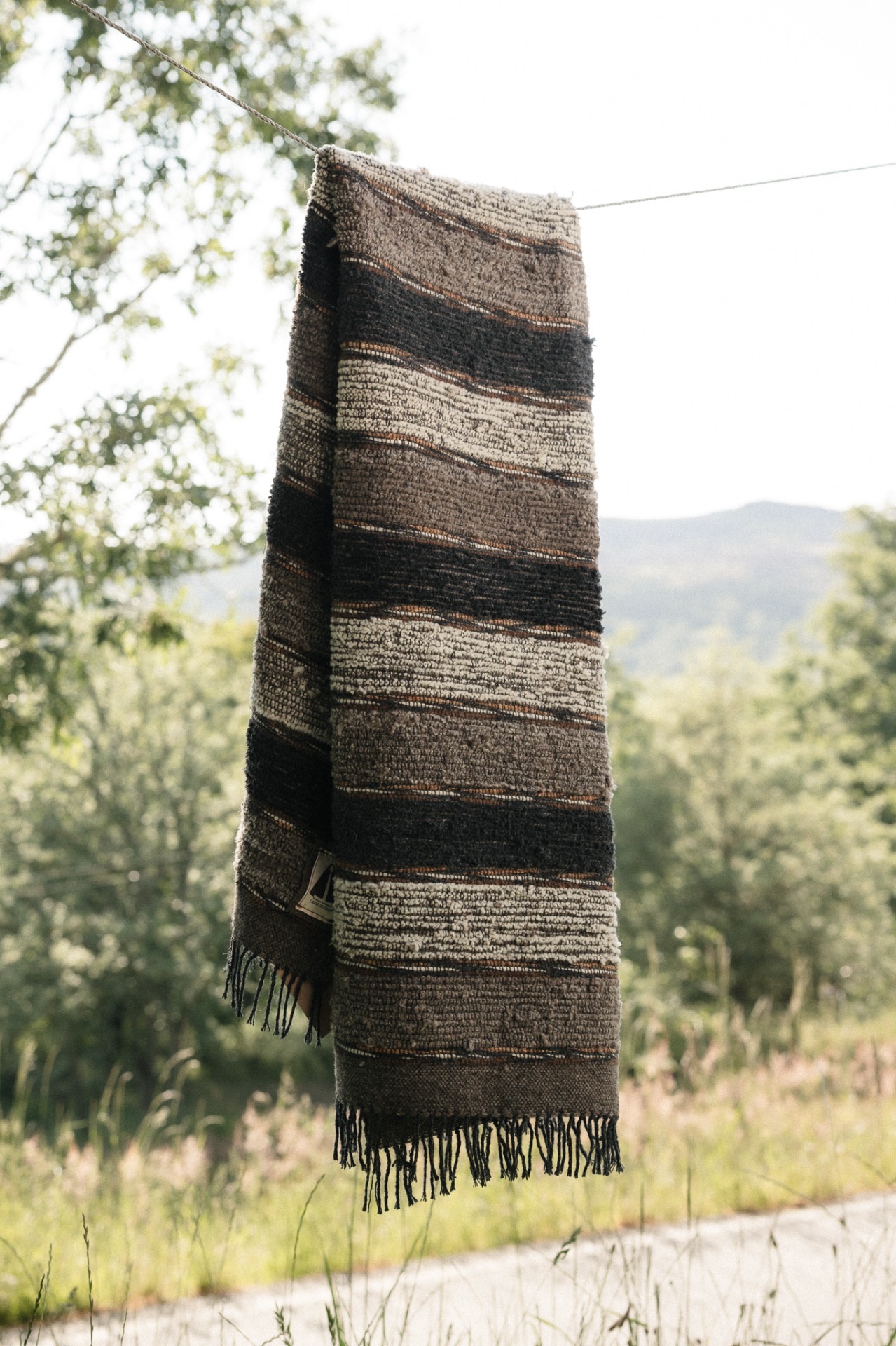 Manta de trapo com risca antracite e cor da teia.